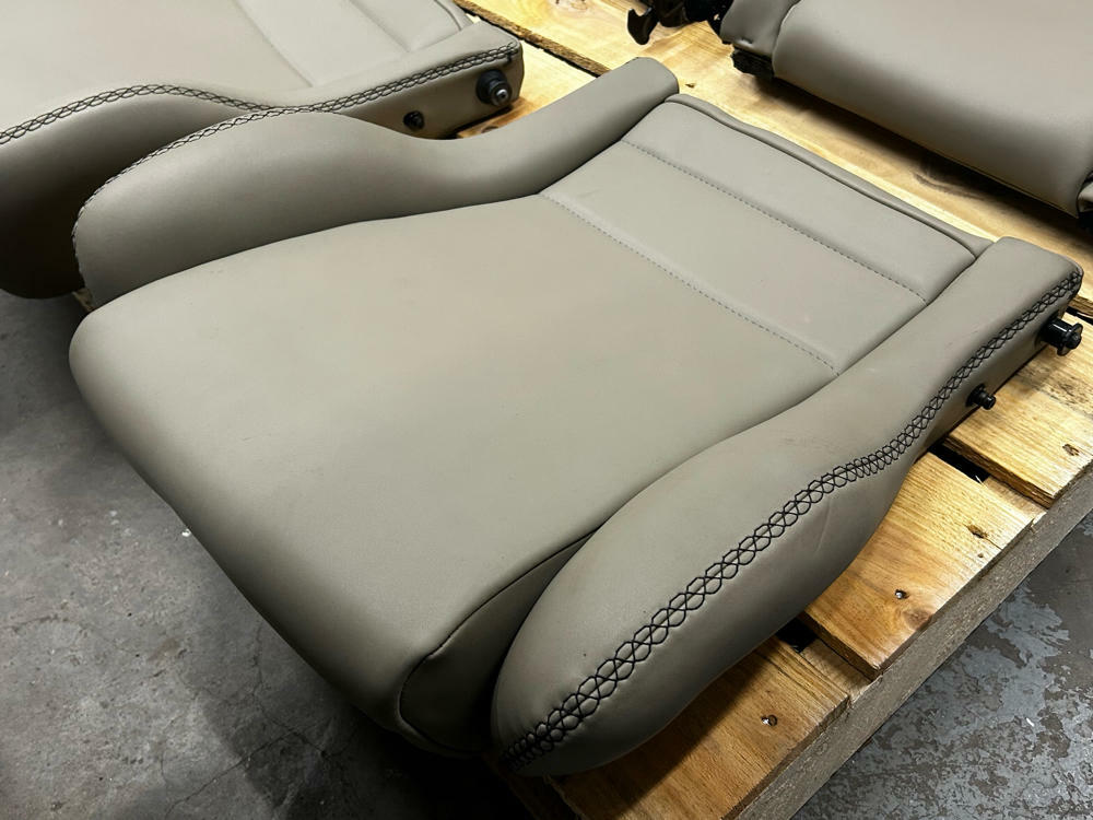 NOTE: Extremely nice shape given the age! These were retrimmed not too long ago and have sat in storage in the personal collection for a bit. Includes everything shown in the pics; they speak for themselves as to the condition of the seats. Extra matching material included at asking price for you to retrim your rears to match as well. NO RAILS! Highly desirable seats that don't pop up on the open market all too often; let alone in this nice of condition.