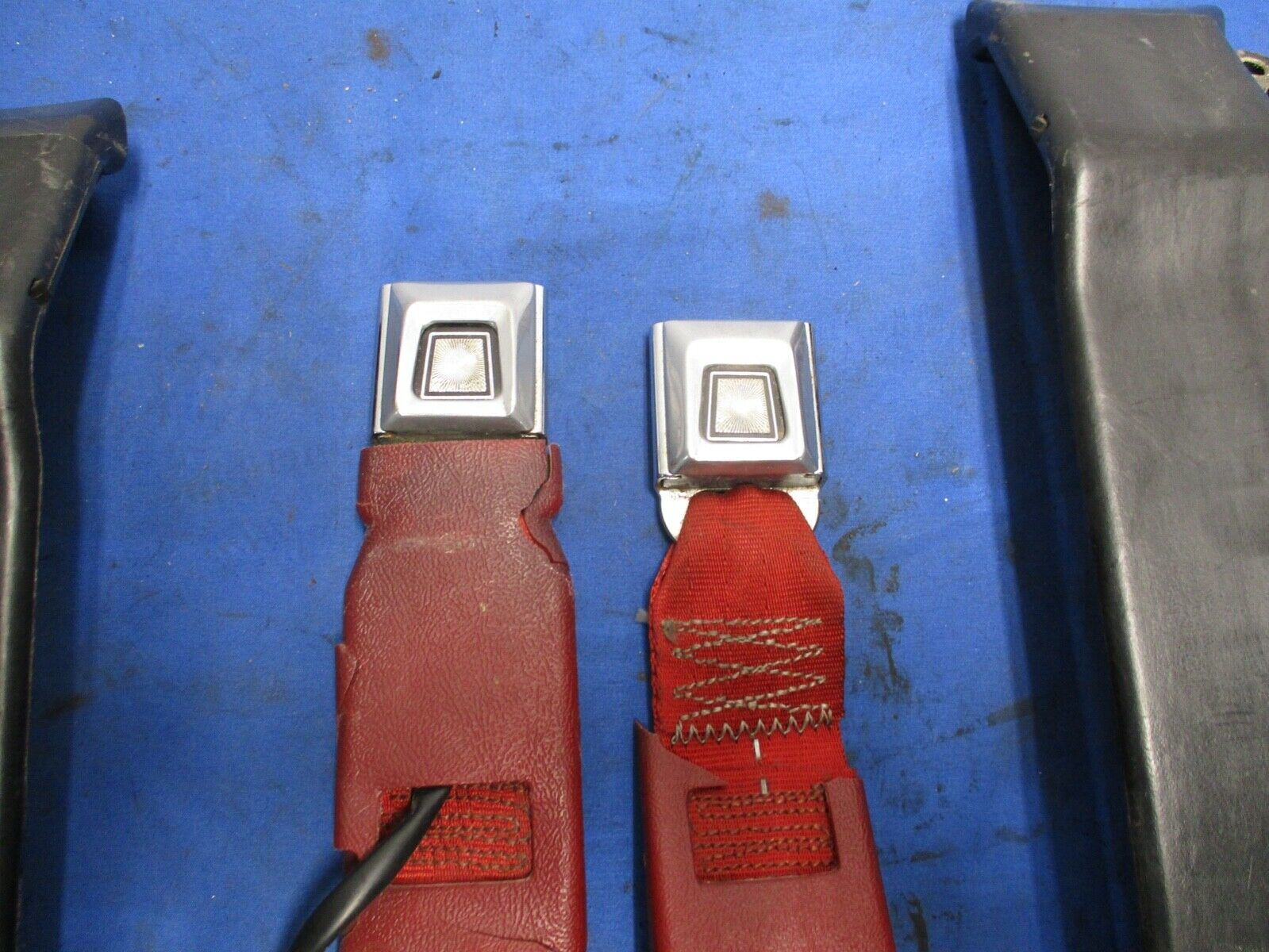 1987-93 Ford Mustang GT Red Front Seat Belt and Buckles Pair