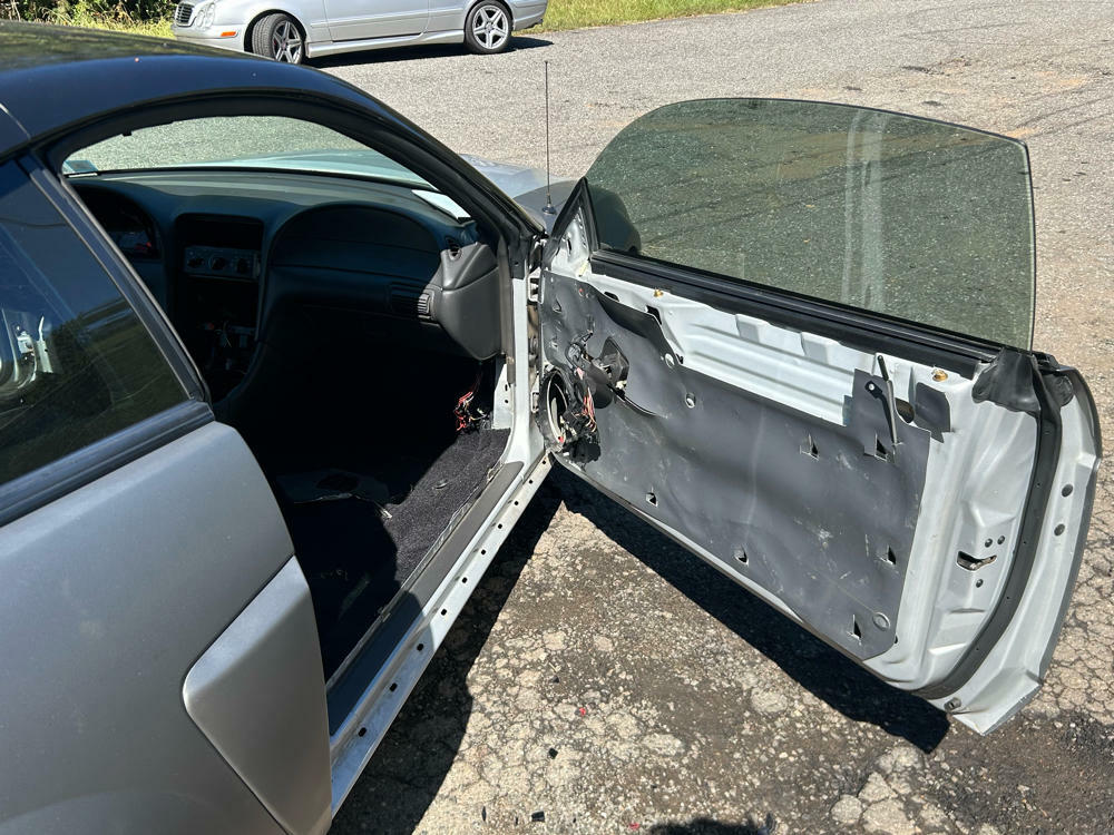 Car was running a full 2003/04 SVT Cobra "Terminator" conversion at one point save the IRS & Harnesses (Had a built SRA & was piggybacked off GT harnesses/ECU). Has been stripped of virtually every single terminator specific piece. Still some solid parts left (partial interior, some harnesses, column w/ key, etc.) Have a repop '03/'04 Cobra front bumper w/ broken tabs that'll go with it.