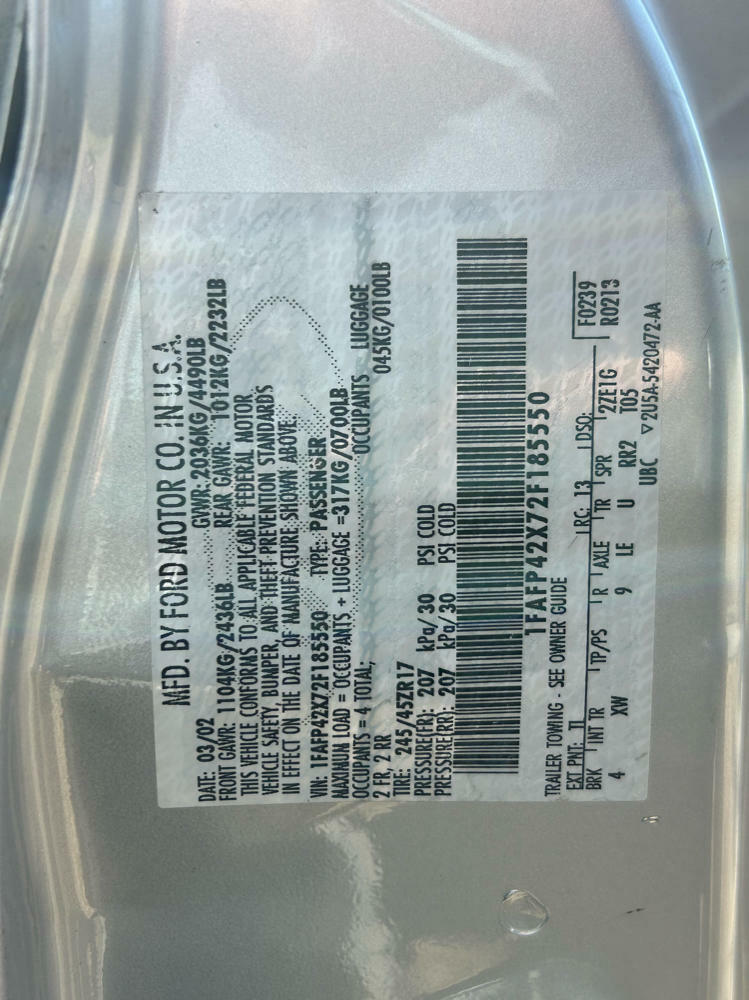 VIN: 1FAFP42X72F18550