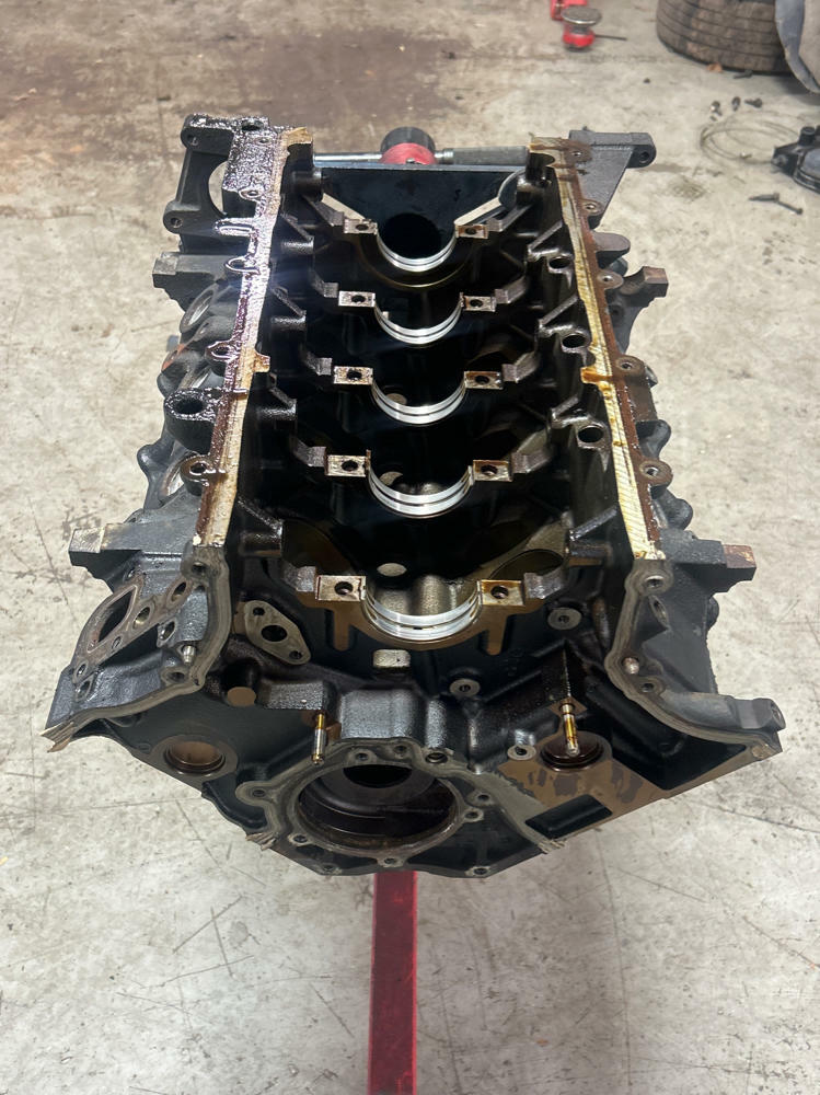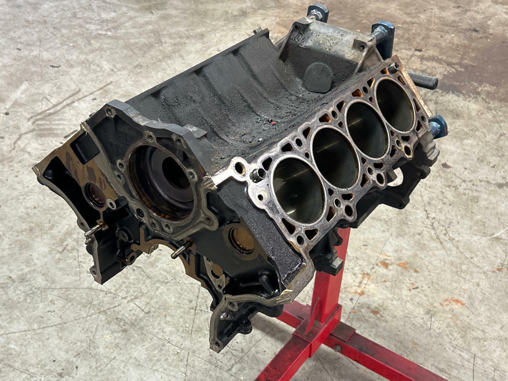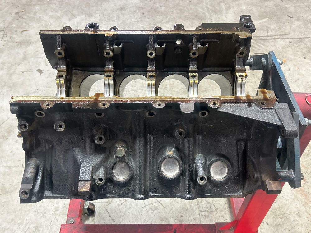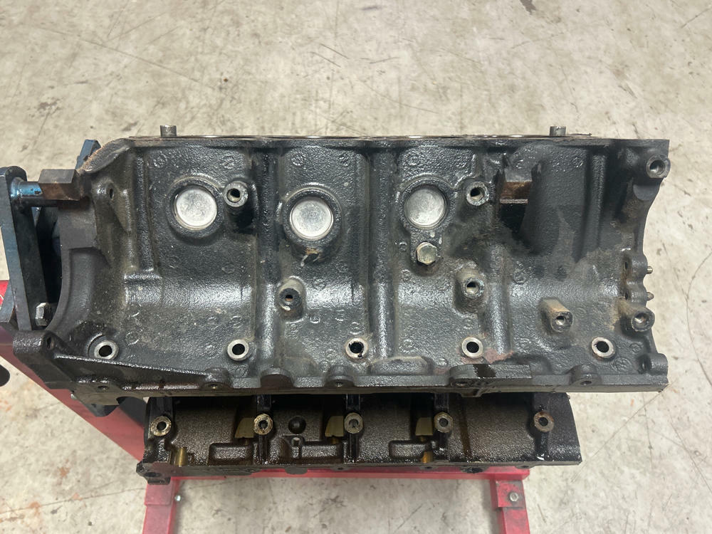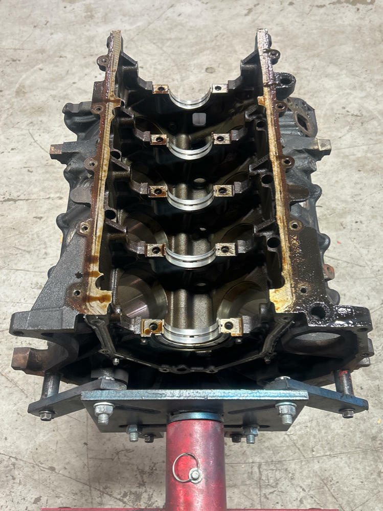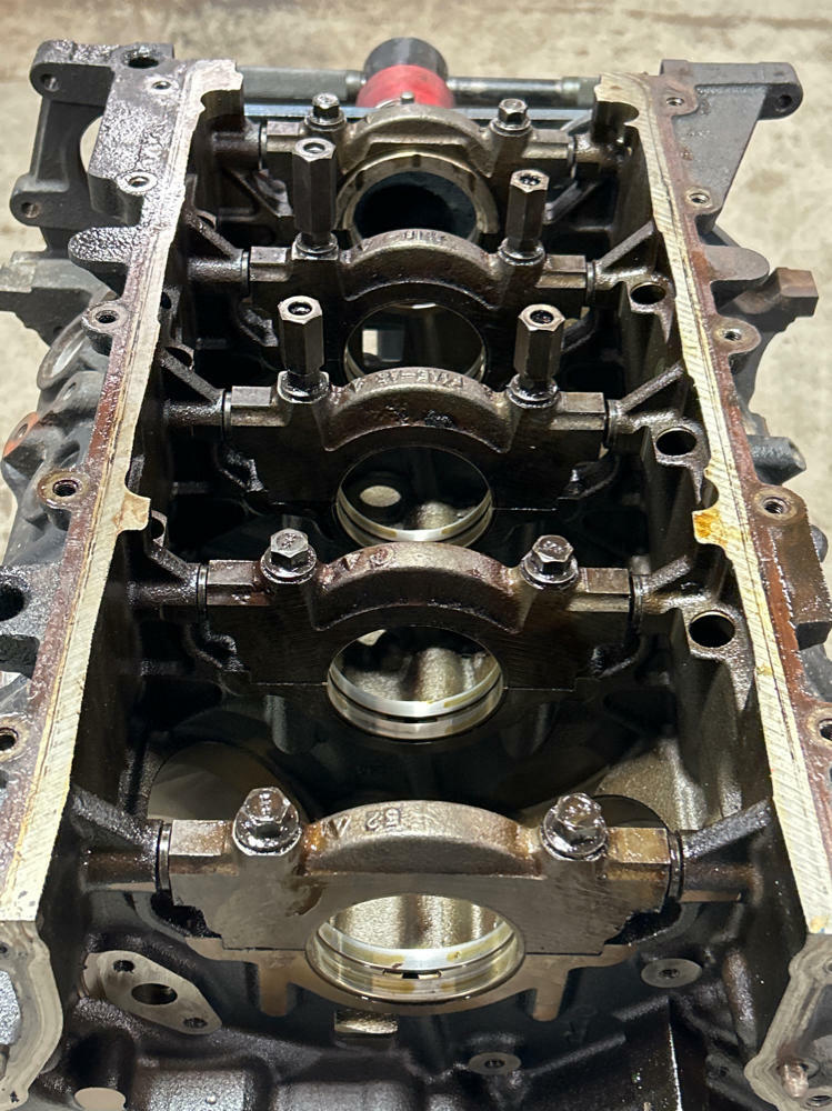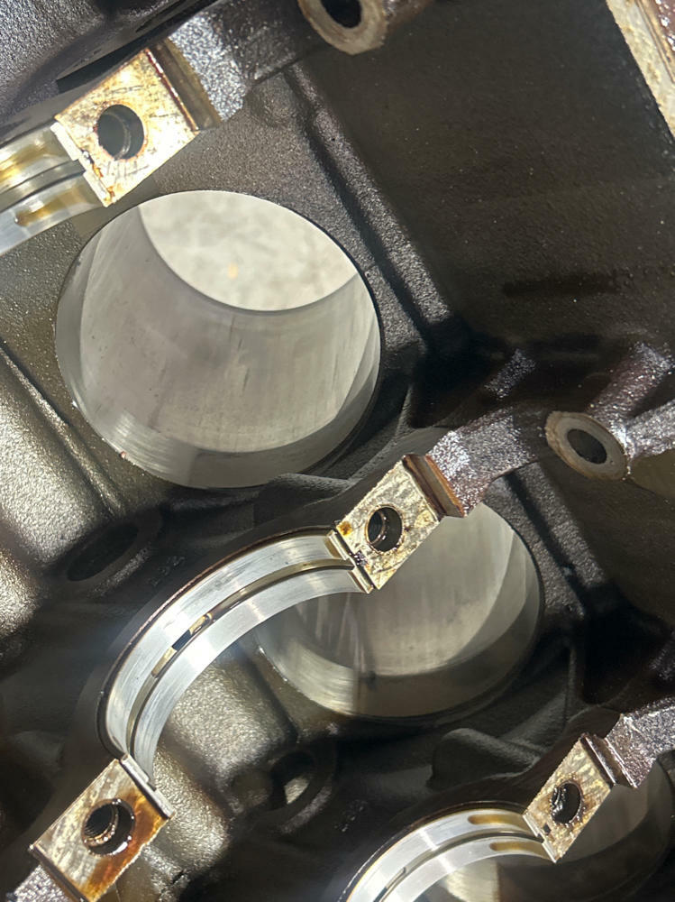 Highly recommend re-honing. Block specific main caps & hardware included. Standard bore. Bearings are scrap; don't recommend reusing them. Motor had low compression and was parted completely. No major evidence of anything on cylinder walls.