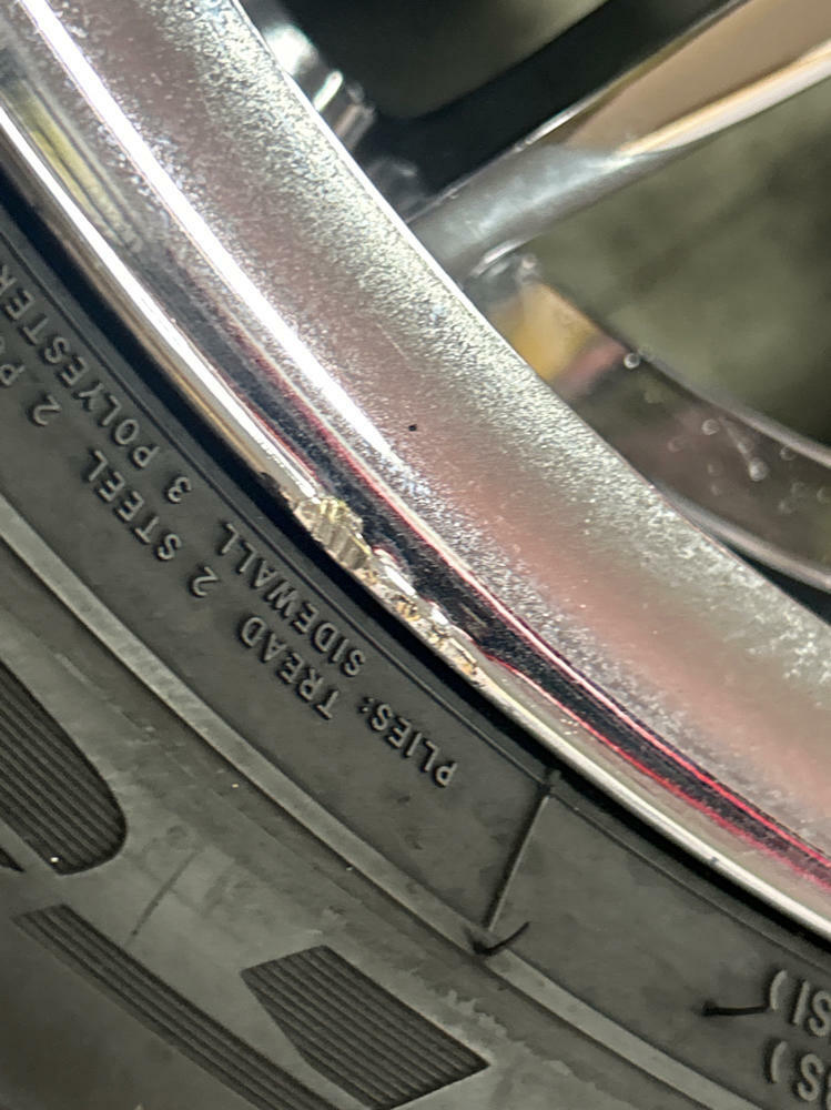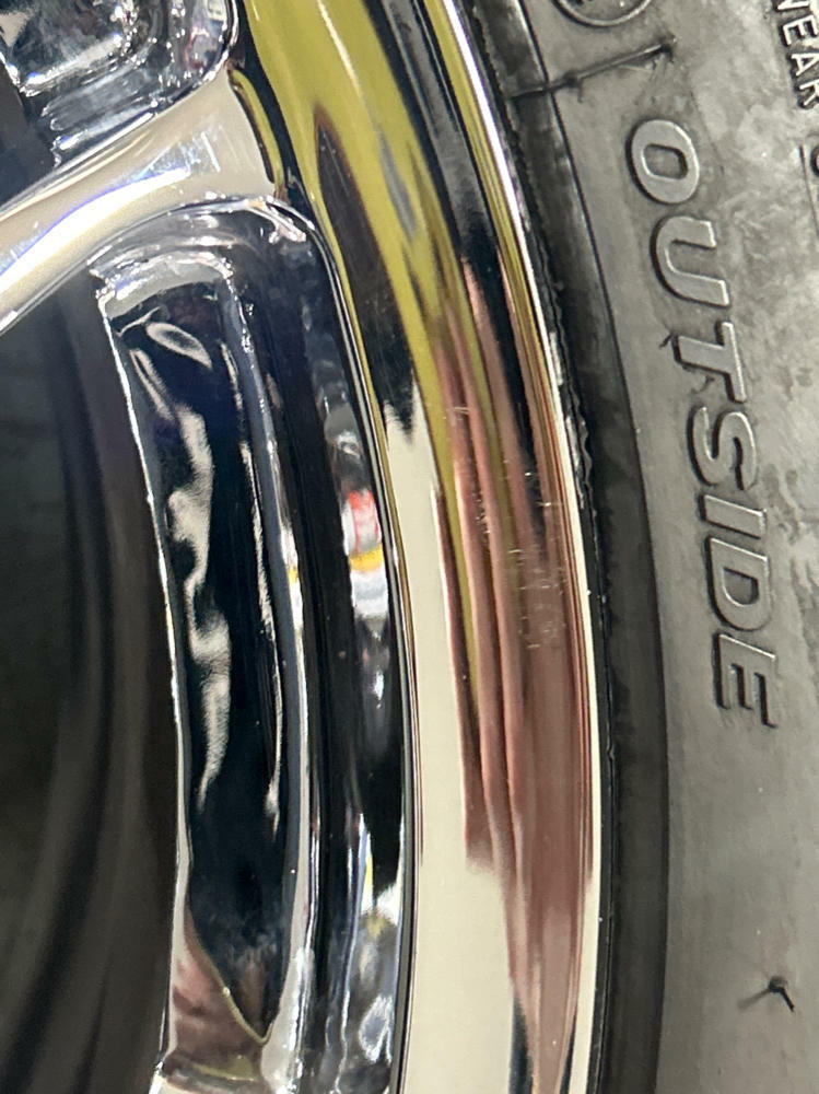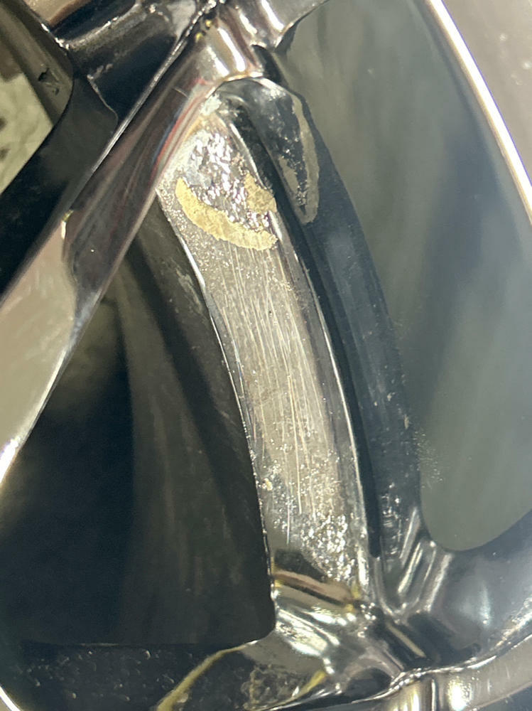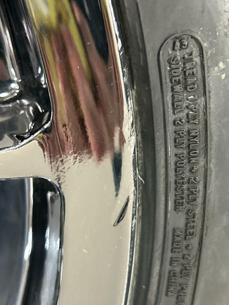 Couple of small scuffs and scrapes. Slight rashing and very slight issues with the chrome in terms of peel on one wheel. Pics show the extent of damages as best as possible.