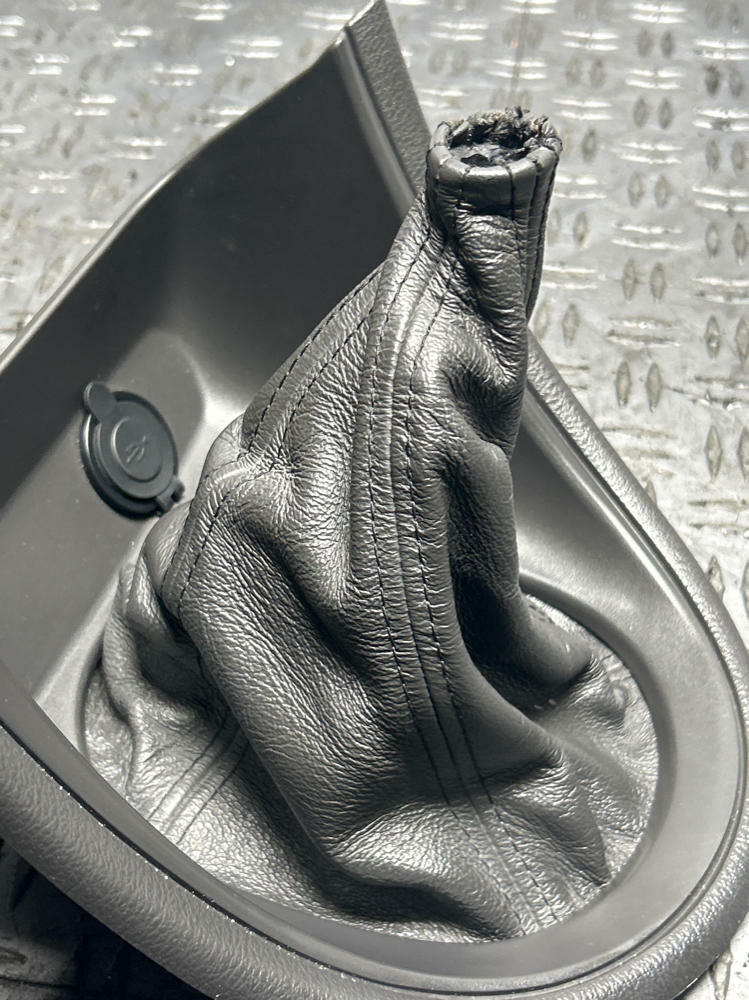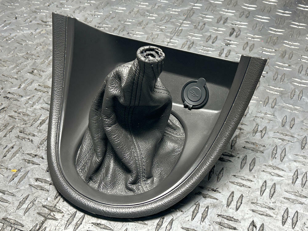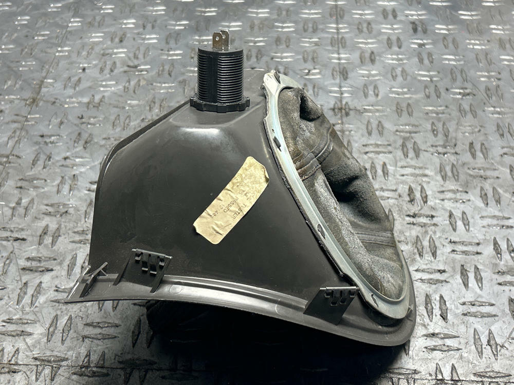 NOTE:Amazing shape for age. Rubber grommet inside of collar of shift boot is toasted but the rest of the piece is mint! No rips or tears in boot. Nice little upgrade w/ the modern cig lighter port being switched over to USB cable. Tiny little air bubble on driver side of bezel; see pics. Early piece; 2002 date coded.