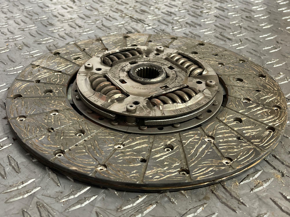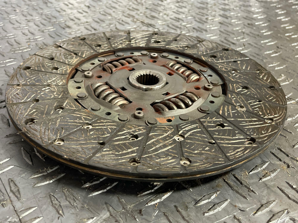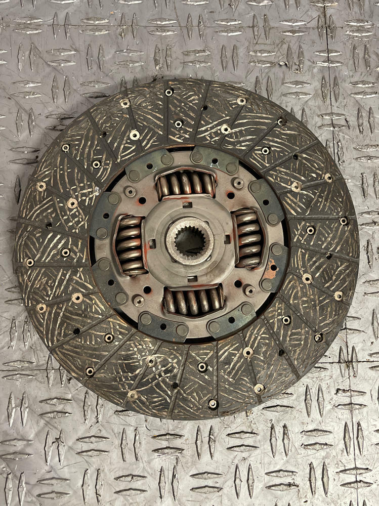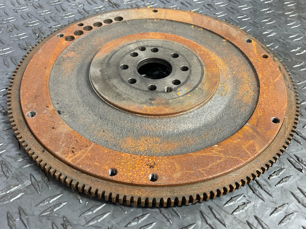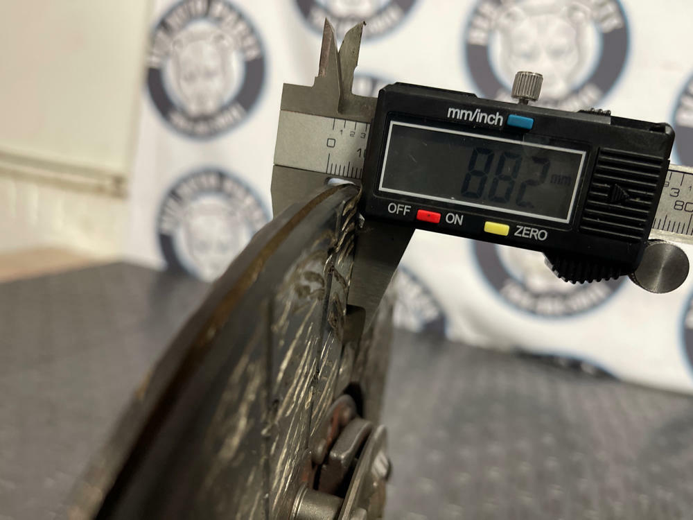 Measurement of clutch material left is in Millimeters. Flywheel has surface oxidation from sitting. Could use a light resurfacing.