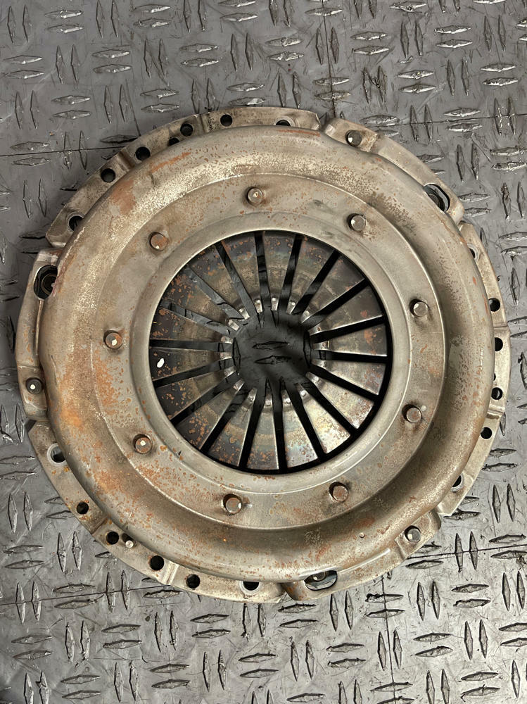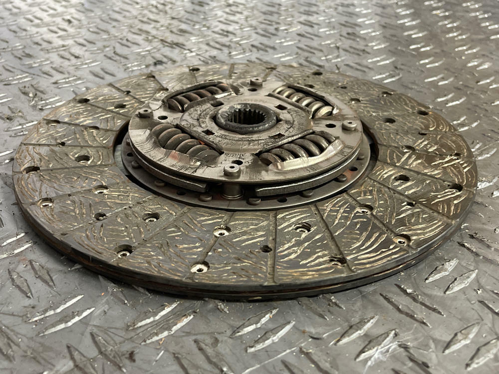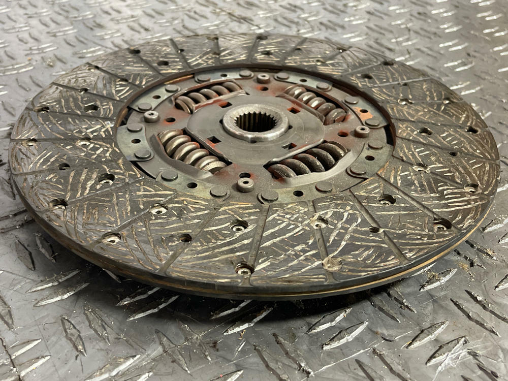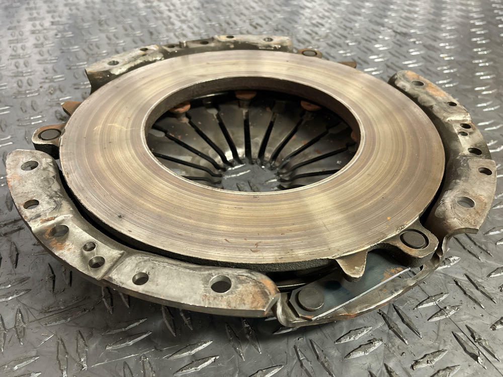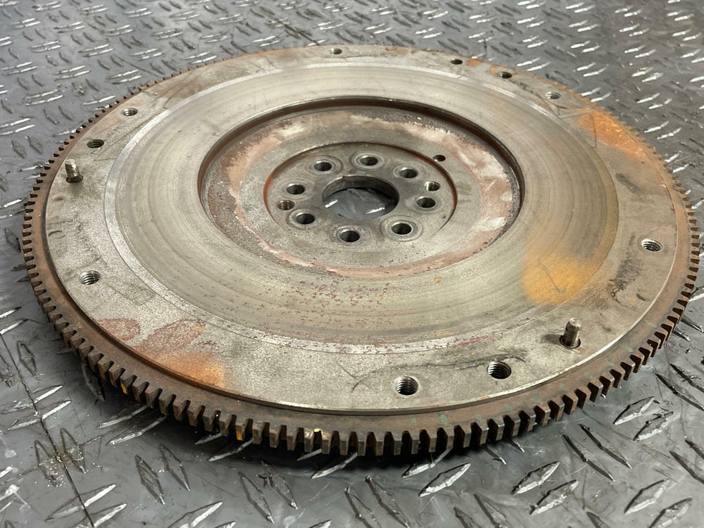 Measurement of clutch material left is in Millimeters. Flywheel has surface oxidation from sitting. Could use a light resurfacing.