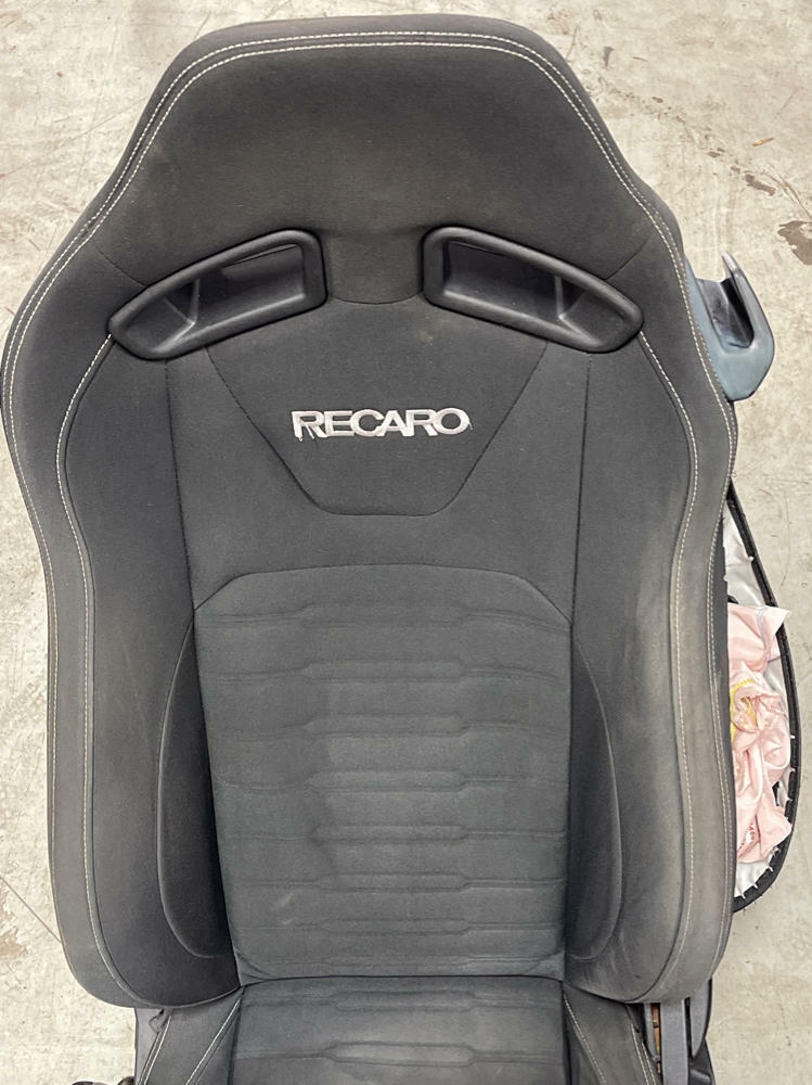 Silver stitching- pretty nice shape, driver side "RECARO" embroidery has a few loose threads (easy fix)